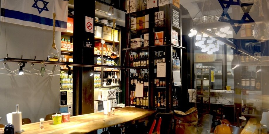 Если пройти через помещение гастронома, который открылся в 2011 году, внутри вы найдете совсем небольшое кафе или гриль-бар. Изначально владельцы не хотели ограничивать себя только потребителями кошерных продуктов, поэтому появилось такое многофункциональное пространство. Концепция места заключается в том, чтобы познакомить всех жителей с ближневосточной израильской кухней, или даже с тем ощущением или опытом, который каждый мог бы получить в израильском магазинчике или уличном кафе. Если вы это почувствуете, то значит у владельцев все получилось.