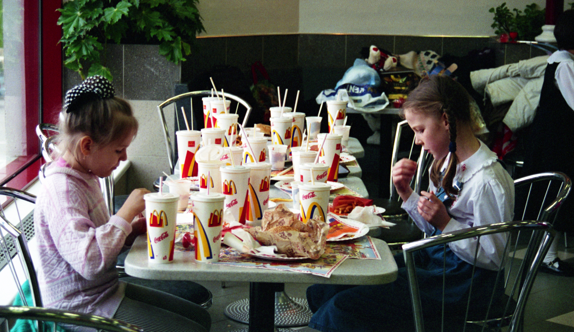 Мне не хватает праздников в Макдональдс. Это время было беззаботным и без заморочек. Все дни рождения моих подруг и мои проходили в этом славном заведении. Мы строили башни из картонных стаканчиков и фотографировались со статуей Рональда Макдональда, который сидел на лавочке.