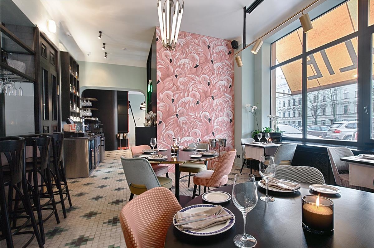 Неважно на чем вы приедете в Санкт-Петербург советуем сразу держать курс на набережную канала Грибоедова, 54 и переходить к позднему завтраку или раннему обеду. Атмосферное место с авторской кухней, где знают толк в гедонистическом подходе к жизни. Здесь гармонично все, начиная от интерьера и заканчивая едой. Ресторан делится на две зоны: более светлую и более камерную, где везде присутствуют такие элементы мимо которых вы не пройдете, не сделав фотографию. Например, витражи с растительным принтом, панно с розовым фламинго, оригинальные зеркала, панорамные окна задают тон настроения, которое точно не может быть плохим.